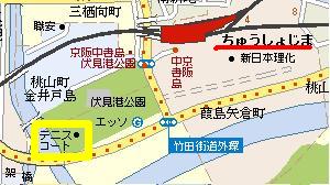 京都市から離れ、京阪中書島駅の近くに有るコート。ゴムのハードコートが6面あります。