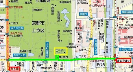 電車の人は、京阪丸太町駅か地下鉄丸太町駅から歩いてきて下さい。
